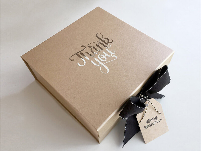 Hộp giấy Kraft có nắp gập và dây ruy băng