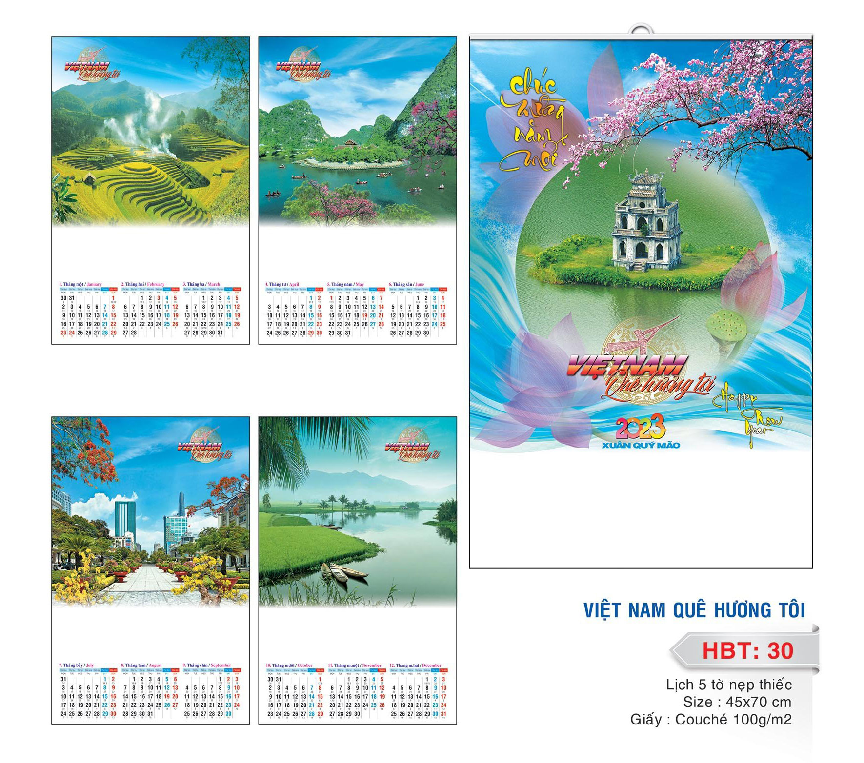 Lịch treo tường 5 tờ ( lịch tháng, mỗi tờ 4 tháng)
